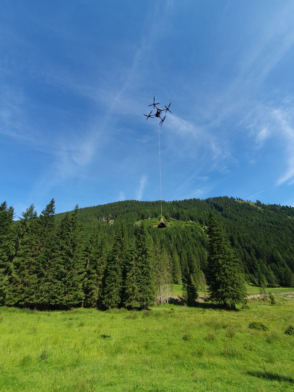 Lasten werden per Funkhaken präzise abgesetzt – ganz ohne Personal im Zielgebiet.