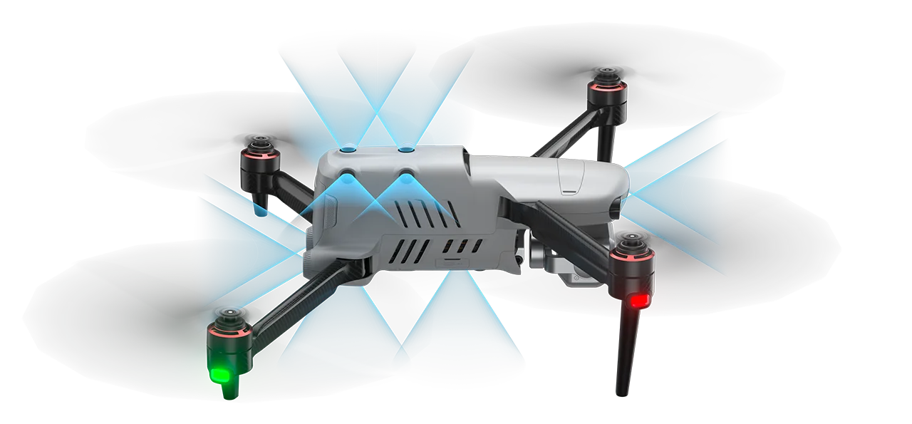 So fliegt sie sicher durch komplexe Umgebungen, da sie bei erkannten Hindernissen automatisch abbremst oder stoppt, um Kollisionen zu vermeiden.