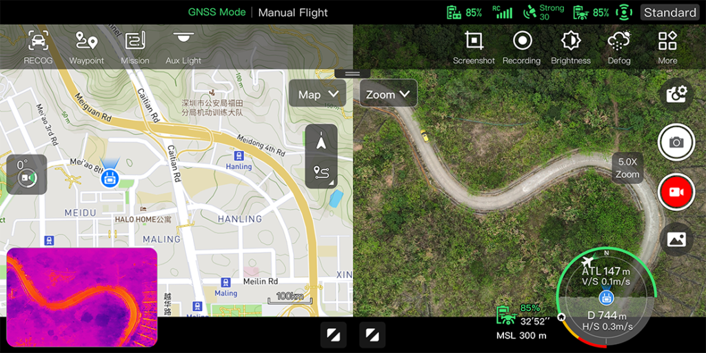 Sichtbares Licht, Infrarot oder Karten können als Dual-Channel gleichzeitig auf dem Bildschirm ausgegeben werden, wodurch umfassende Informationen durch den Vergleich bereitgestellt werden.